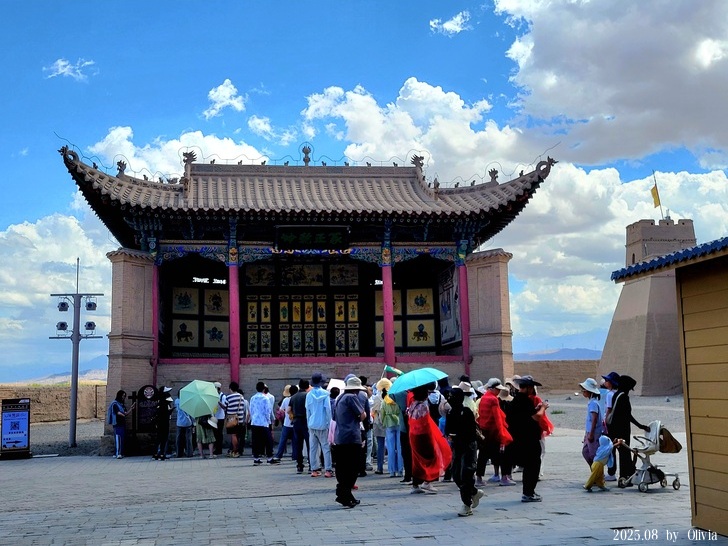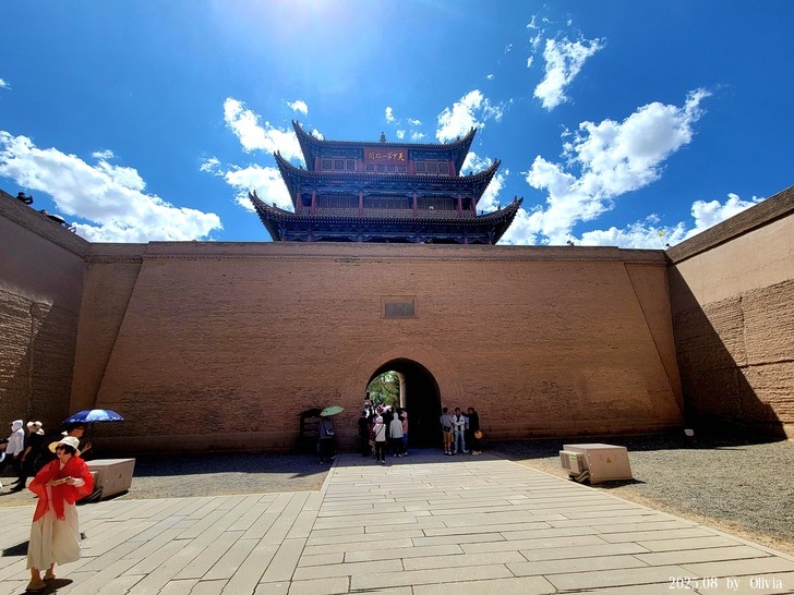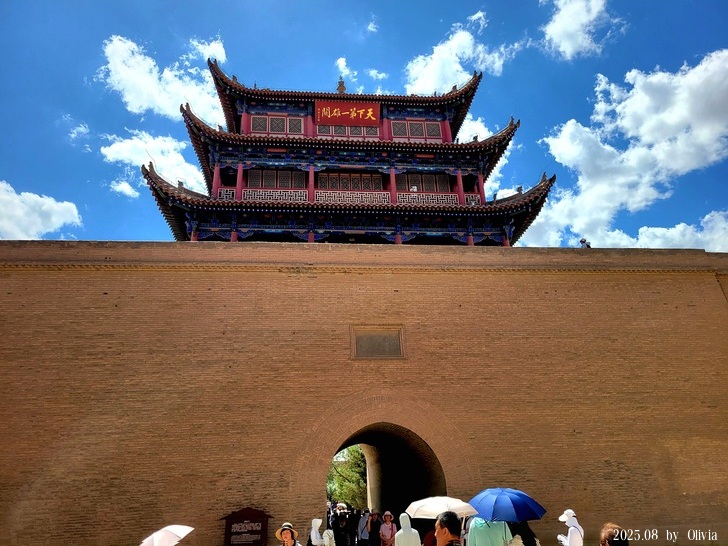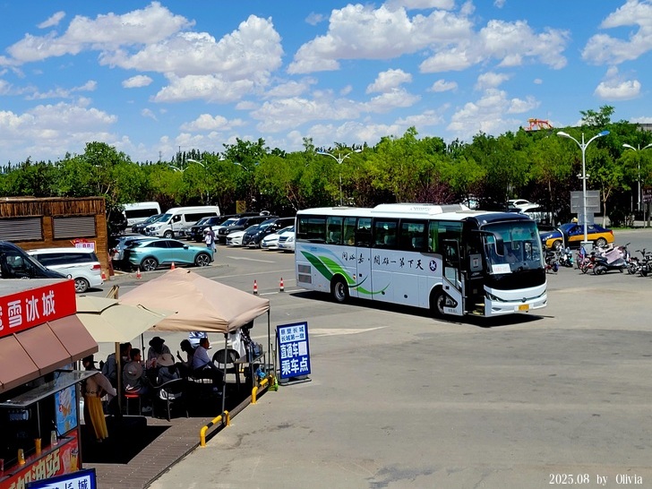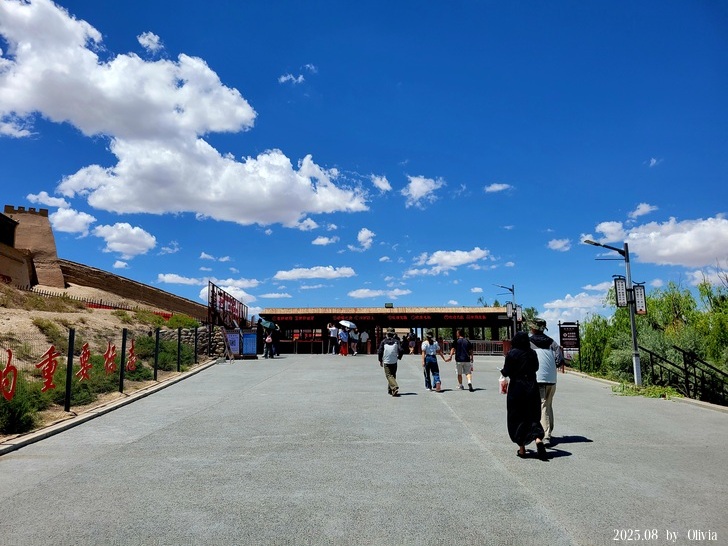 從酒店打車到<嘉峪關關城>,<關城>前就有大巴到<長城第一敦><懸臂長程>,當場買聯票即可。