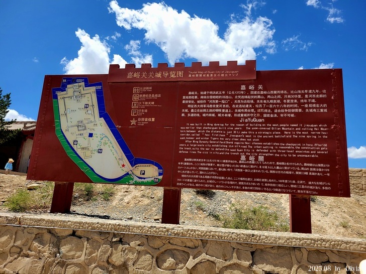 嘉峪關建於明洪武五年(1372年),由內城、外城、羅城、甕城、城壕和南北兩翼長城組成,全長約60千米。長城城台、墩台、堡城星羅棋布,由內城、外城、城壕三道防線組成重疊並守之勢,形成五里一燧,十里一墩,三十里一堡,百里一城的防禦體系。