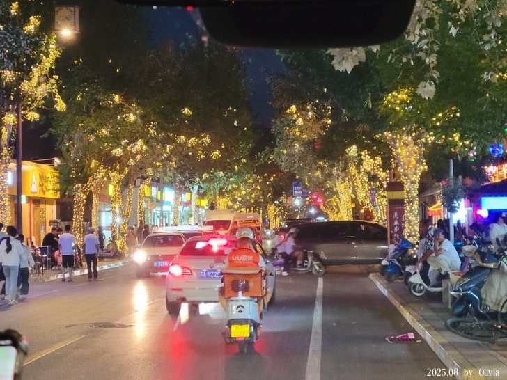 出車站天已經暗了,車上一組人大約3~4位吧~師傅送他們去酒店,在小區裡面(像工地),車子進不去,又有好幾棟,師傅還是很有耐心地繞來繞去幫他們找到民宿,那要是沒接站服務,真的會找到哭。