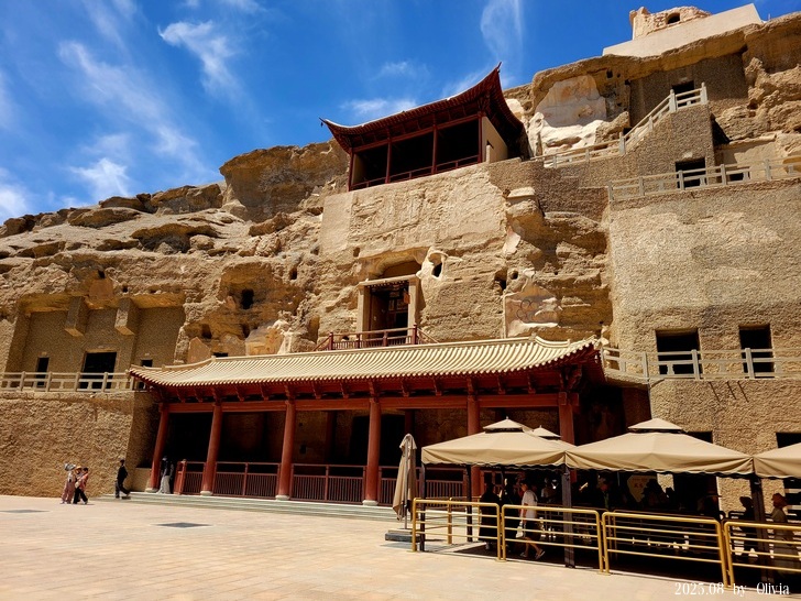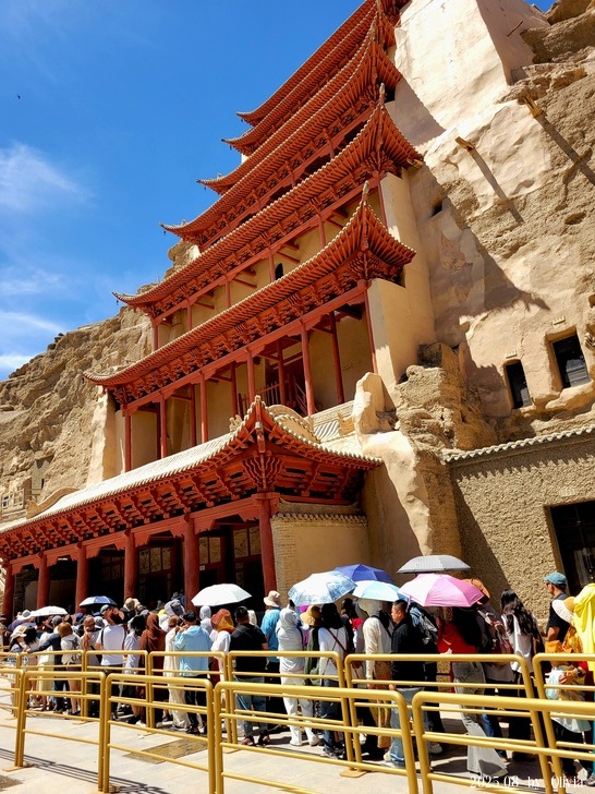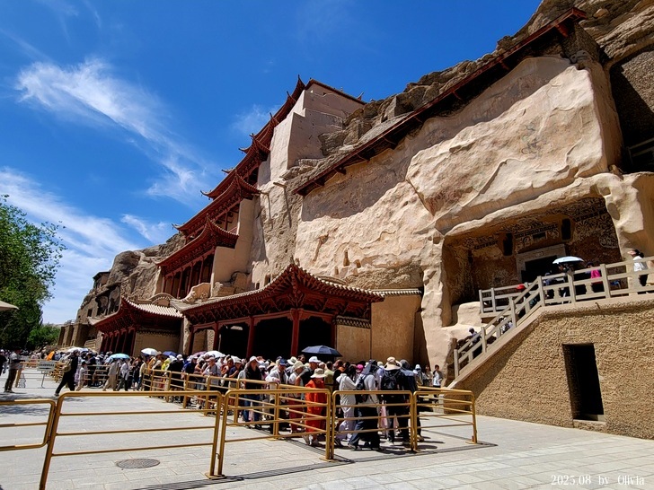 我聽完正常票導覽後,繼續排隊參觀應急票的4個石窟。人超多,且較不守秩序,常有人拿起手機偷拍,洞窟內有人監視廣播提醒,曾見第一次被廣播的人還裝無辜(進門前早就一直廣播提醒了),他竟第二次又拿出手機...廣播直接說再犯要請他出去,還請保全來勸說,實在臉皮有夠厚。但他們也不會請他刪照片或更強制的行動,應該很多人就會明知故犯吧~