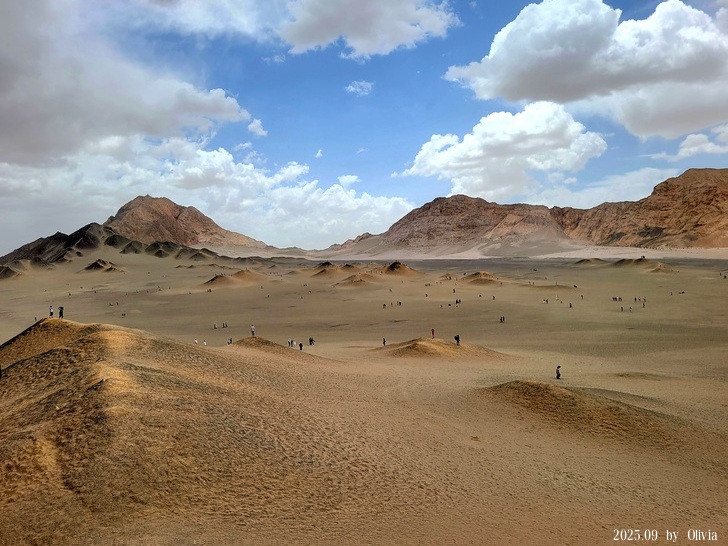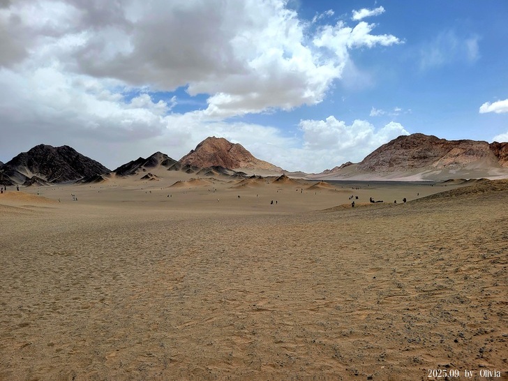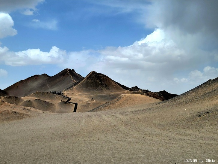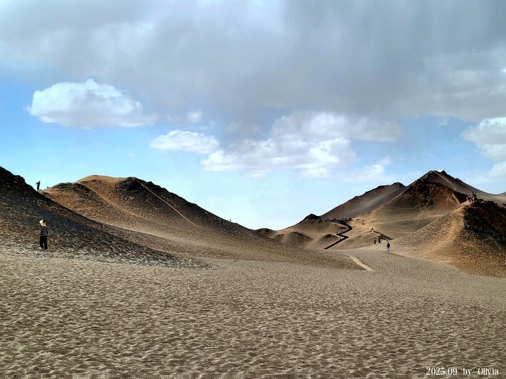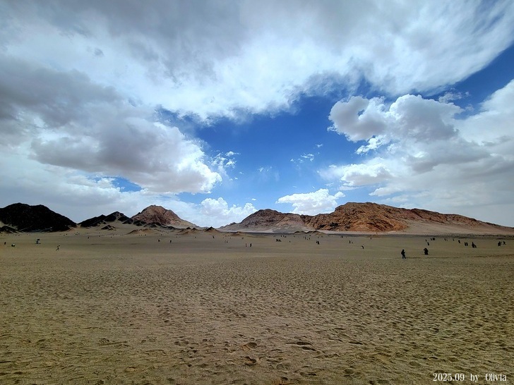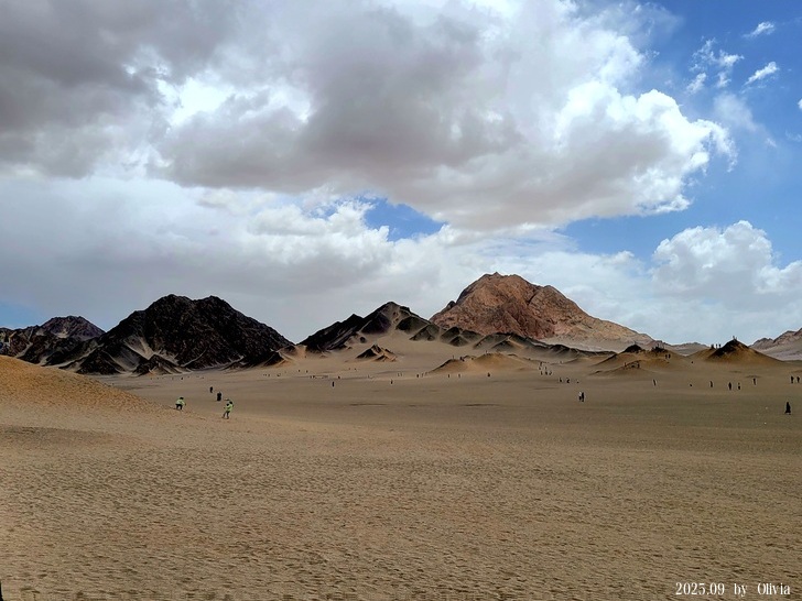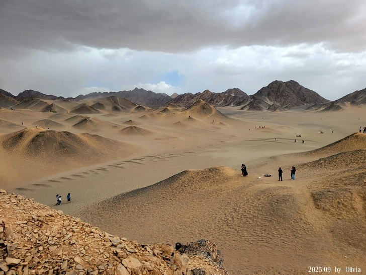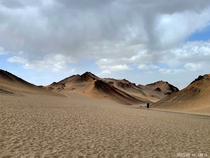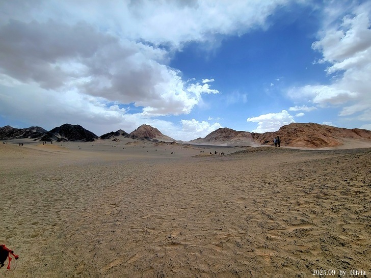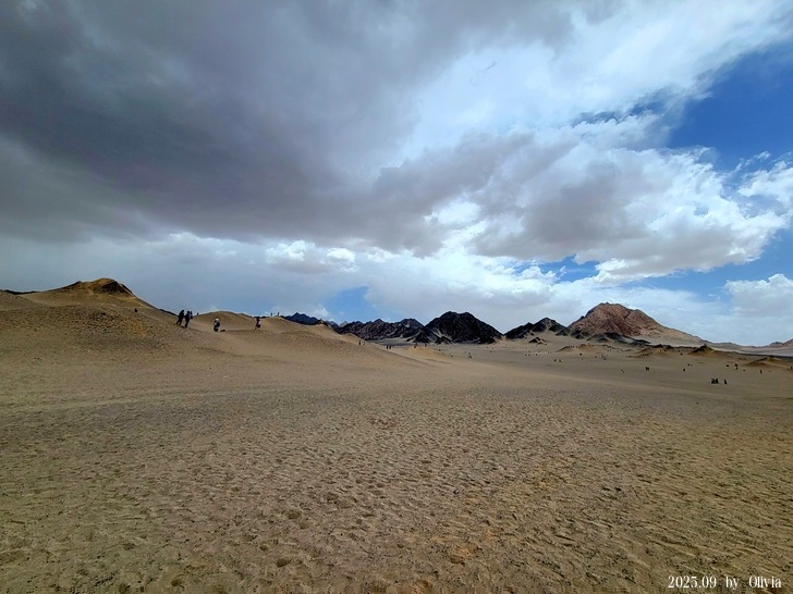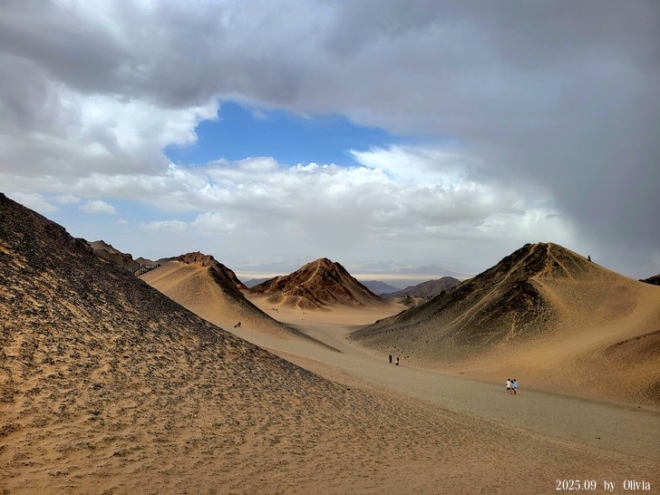 天空一邊烏雲密布、一邊晴空萬里,後來竟然淋到幾滴雨,實在太幸運了。但雷聲隆隆也挺可怕的,在西北我竟遇過幾次下雨(敦煌、天橋山,可可西里7月還下雪,冬季卻不下雪,這是什麼異世界? 太誇張了),實在不可思議(可以查查他們的年雨量)。