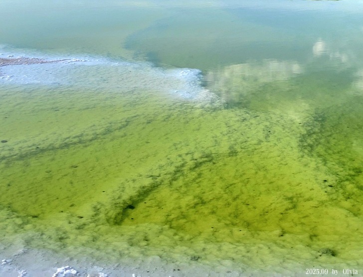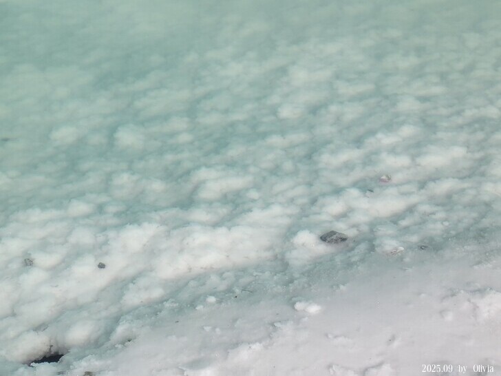 大柴旦翡翠湖属硫酸镁亚型盐湖,原是化工厂盐湖采矿队的采矿区,是海西州第三大人工湖。由于湖水含盐量高,四季不冻。湖内富含不同浓度的钾、镁、锂等多种元素,所以呈现出不同的颜色。翡翠湖清澈通透,透过水面,能清晰的看到湖底的盐层。翡翠湖内层呈碧蓝色,外层呈奶蓝色,透过水面,能清晰看到湖底的盐层。