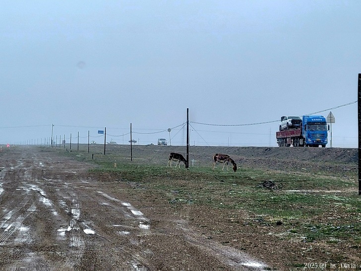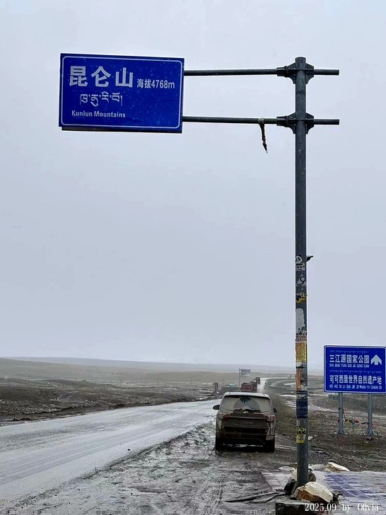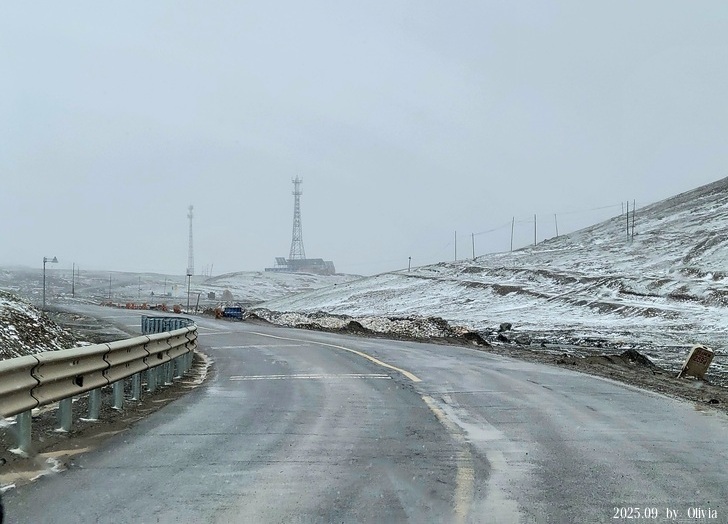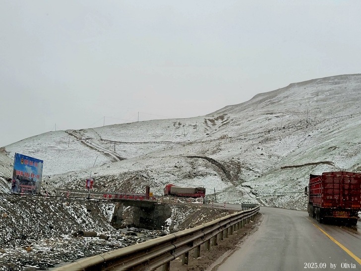突然下起雪來,讓我們驚呼不已,現在是7月!! 帶團師傅很<愛國>,總希望我只看到<祖國>最美好的一面,後來聊開了,他希望可可西里7月會下雪不要回台說(冬天卻不下雪,我猜是因為太乾燥),怕台灣人嚇到不敢來。