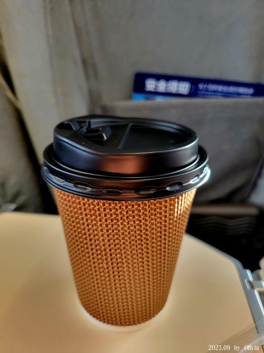 ▲第一次遇到在高鐵上有賣咖啡,記得將近台幣100吧? 先跟服務員點,掃微信付款,她再端過來。