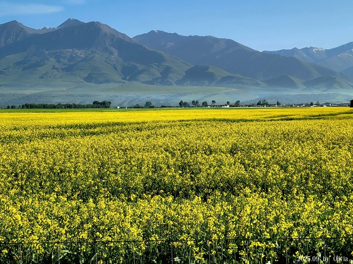 冷龍嶺下、浩門河畔,金黃的油菜花綿延上百公里。每年七月,青海省海北州門源縣油菜花風吹花搖、遍地金黃,如大海翻波,在高原深藍的天空下,與遠山近水、村落人家相輝映,壯美的花海景觀展現在大地之上。門源縣位於祁連山脈東段,這裡地域廣闊,油菜種植歷史悠久,是北方小油菜的發源地,有“門源油,天下流”之譽。(取自人民網)