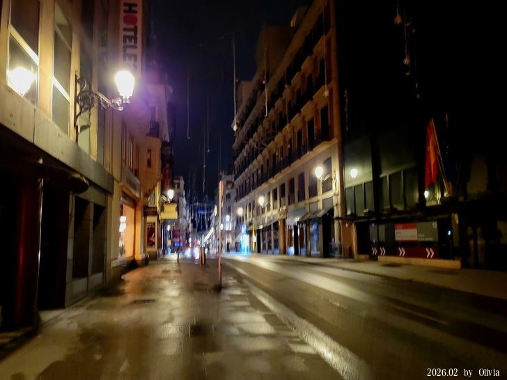 不是我故意把它拍糊了,我說過吧?! 西班牙清晨(早上7:37)比晚上可怕...因為路上沒有人.....