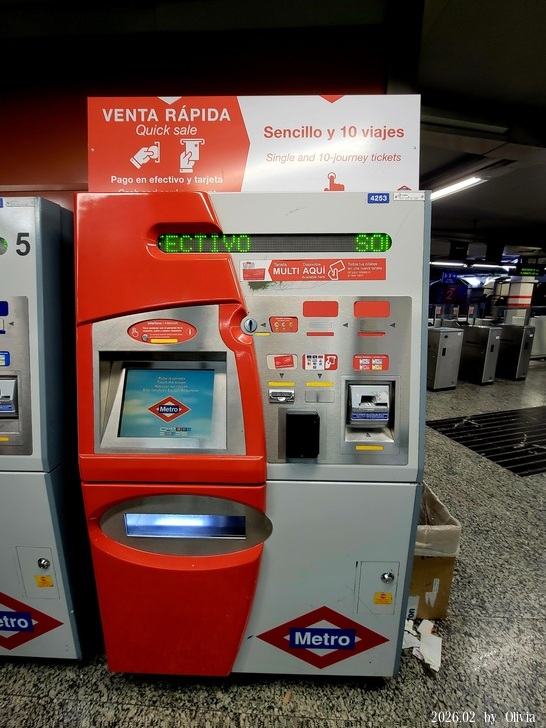 當她退我錢後,便轉身要離開,我趕緊說,可是我現在必須搭地鐵...(去ALSA巴士站到托雷多),她打開地鐵閘門要我進去,可是我又擔心,沒票搭地鐵萬一被查票會被罰錢,她用頭一指,意思就是放心去搭就是了。後來才知,西班牙進地鐵站要刷卡,出去不用再刷。