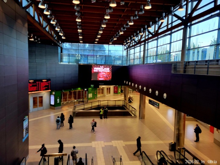 ▲搭巴士的門口,上面有螢幕顯示班次,等時間快到或車子來了才從出口上車