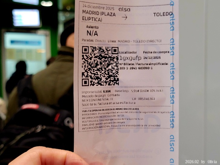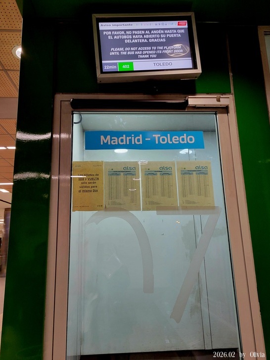 巴士: Plaza Eliptica, Vía Lusitana →alsa bus 50分→托雷多Toledo bus車站