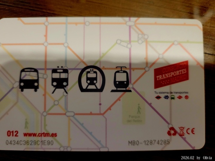 西班牙搭地鐵買票得先加買卡片(▲▼正反面),每一個城市的地鐵卡還不通用,就是要你花錢買卡就是了,做功課時還得算算是要買一日券、二日券...或10次卡之類,不是不告訴你,我就是數學不好算不出來,況且,做那麼多功課就已經很頭痛了,還要算在馬德里或巴塞隆納...大概會搭幾次地鐵? 拜託~饒了我吧!!