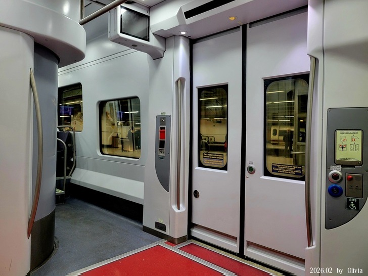 會拍這張相片,只是要告訴你,西班牙的近郊火車與地鐵不會自動幫你開門,要按門上的<綠色鍵>▲,妹妹也是在澳洲有練過喔~