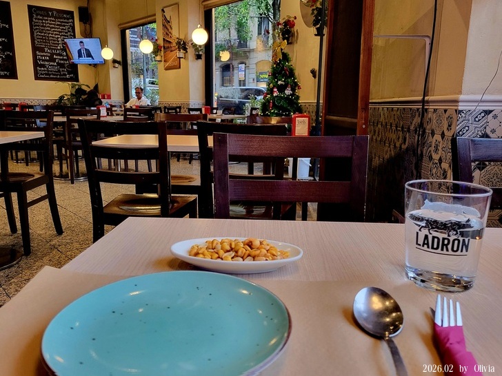 因外面下著雨,所以決定等到check in時間再回去,也就有時間慢慢嗑。也因待在餐廳長,才發現這家餐廳西班牙本地人來的較多(有拉霸檯子),大都進來喝杯咖啡配個簡單三明治+看看報紙。重點是要說,沒人跟我一樣中午(而且還沒PM2:00)吃大餐的。