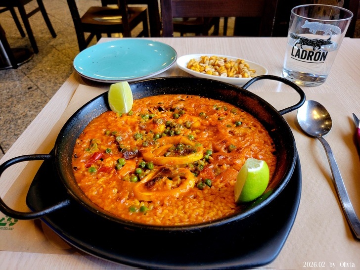 來西班牙還沒機會吃到西班牙燉飯,有機會就嚐個鮮吧~店員<都是>中國人,還不錯吃(後來有吃過很鹹的)。我姐問,這麼大你吃的完? 其實它只是薄薄一片,好看面而已(請用台語說) ,但吃完也真的很飽。