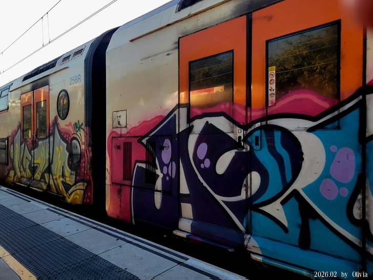 ▲列車裡面舒適乾淨,但外面總是被塗鴉的一團糟。記得某些高鐵還是火車,下車廂時的高度蠻高的(與地面的距離),還得有人幫忙搬行李箱否則真的下不去。