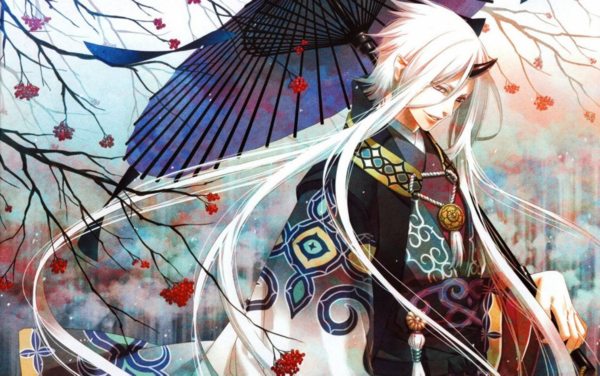 容貌:白色的长发直达腰部,金黄色的眼睛,额头上长者一根牛角,脸型偏向反派角色~