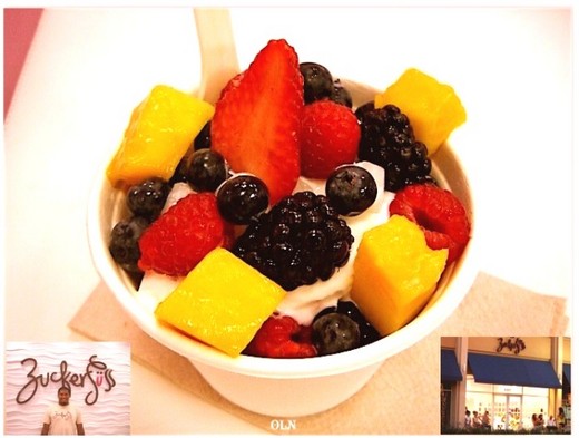 您知道嗎 原味優格只有一顆大蘋果的熱量 對於女士們 這不是夢幻極品嗎 小小店面 他的員工卻充滿服務熱忱. 他說他自己只吃低脂牛奶, 故他的優格也要幅合他的喜好, 難怪我好喜歡他的Fro Yo 不只帶有綿細 入口即化的清爽雅緻, 僅呈現優格的酸香味 沒其它怪味. 搭配甜甜的芒果及酸酸的覆盆子 黑莓等多種水果, 薄片杏仁, 壓成小塊的巧克力餅干, 也有具嚼勁的小顆麻薯, 對小朋友來說, 灑點五彩糖粒在霜凍優格上 就可以吃得津津有味. 香濃滑順的霜格淋冰涼順口, 香甜味表露無遺, 水果霜格淋就這麼譜出了和諧的美味. 在家我也常常自製優格, 口味若過酸或太甜 不夠濃郁我都挑.