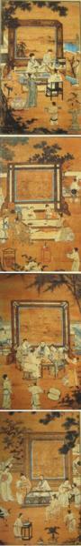 其人物畫大都表現古代傳說故事或逸聞趣事,並以山水及園林景致為襯景,有的還題詩作賦,顯示著一派文入畫的格調。