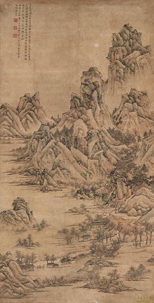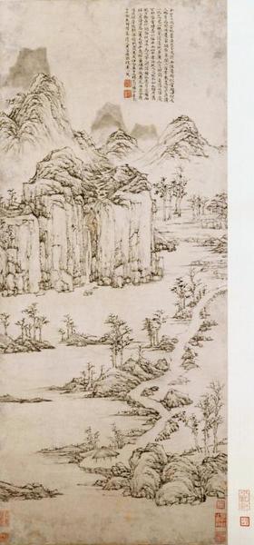 在文徵明的引導下,陸治對王蒙和倪瓚的筆法頗能發揮,善於以方折側筆枯淡墨色,來傳達山石嶙峋險峭的意境。