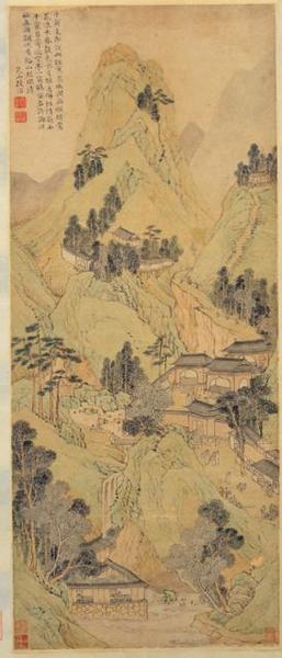 傳世作品見有學習元代王蒙(1308~1385)、吳鎮(1280~1354)、倪瓚(1301~1374)的山水風格,也見有模擬南宋山水小景,以及取法沈周、陳淳(1483~1544)寫意花卉的風格。