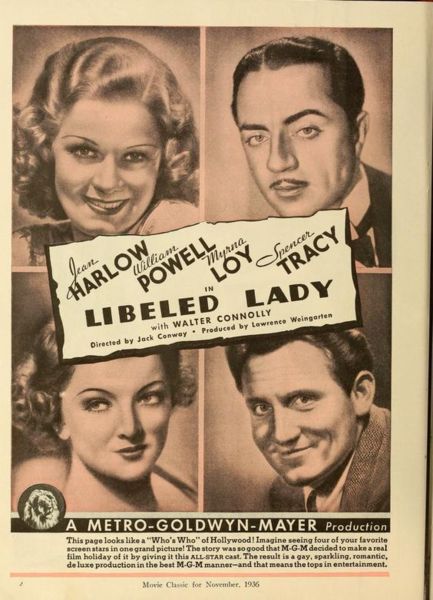同年主演賣座screwball愛情喜劇經典[Libeled Lady]