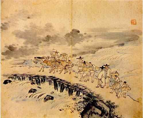 朝鮮三大風俗畫家──‘三齋’之一──常以幽默諷刺手法描繪庶民生活的[金得臣]