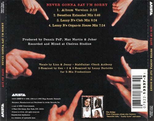 1996年3月 瑞典熱門流行四人團王牌(Ace of Base)發行專輯[The Bridge]第三首主打[Never Gonna Say I’m Sorry](美國直到8月才推出)