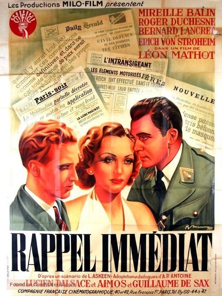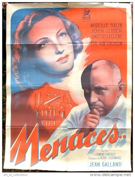 但與美國製片爭執不斷, 決定回法國繼續發展1940年主演心理戲劇片[Menaces…](1938年拍攝)