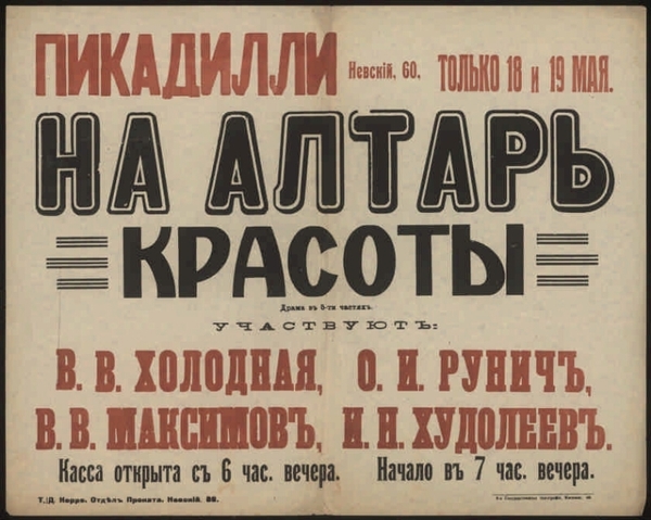 1916年主演大賣悲劇文藝片[The Miragess/海市蜃樓]/賣座幻想片[В мире должна царить красота/世界該讓美麗統治](在省區票房更好)/文藝片[Fiery Devil]