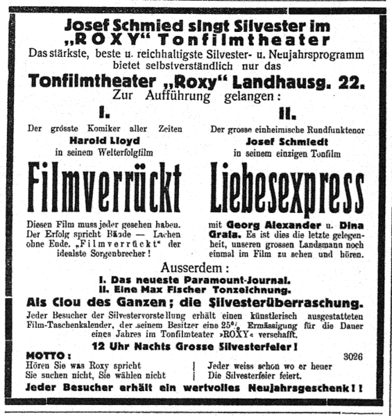 1934年主演奧地利電影──喜劇[Wenn du jung bist, gehört dir die Welt/當你年輕時, 世界屬於你]