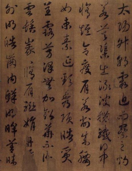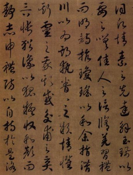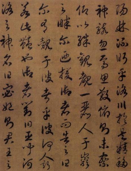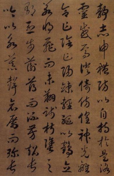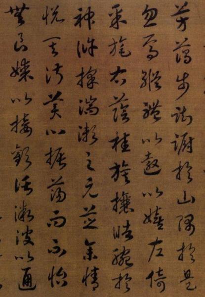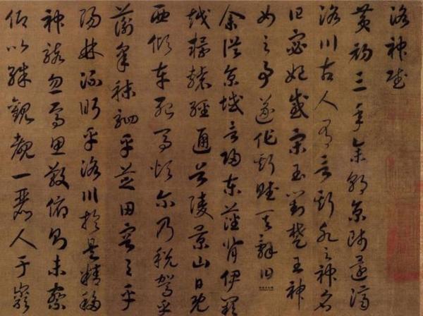 趙構《草書〈洛神賦〉》今藏遼寧省博物館,絹本,高27.3釐米,長277.8釐米,末署德壽殿書,確為晚年之作。寫時省略了原文所有的語氣詞"兮" 字,這樣的省略在書法作品中很少見。