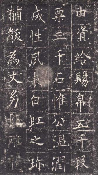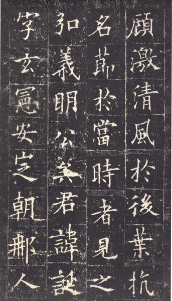 惟公溫潤成性,夙表白虹之珍;黼黻為文,幼挺雕龍之采。行已窮於六本,蘊德包於四科,延閣曲台之奇書,鴻都石渠之秘說,莫不尋其枝葉,踐其隩隅。譬越箭達犀,飾之以括羽;楚金切玉,加之以磨礲。救乏同於指囷,親識待其舉火,進賢方於推轂,知已俟以彈冠。存信舍原,黃金賤於然諾;忘身殉難,性命輕於鴻毛。齊大小於沖襟,混寵辱於靈府,可謂楷模雅俗,冠冕時雄者也。方當亮采泰階,參綜機務,豈謂世逢多故,運屬道消,未展經邦之謀,奄鍾非命之酷。世子民部尚書上柱國滑國公無逸以為,邢山之下,莫識祭仲之墳;平陵之東,誰知子孟之墓。乃雕戈勒石,騰實飛聲,樹之康衢,永表芳烈。庶葛亮之隴,鍾生禁之以樵蘇;賈逵之碑,魏君歎之以不朽。乃為銘曰: