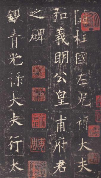 楷書28行,行59字。碑額篆書“隋柱國弘義明公皇甫府君碑”十二字。