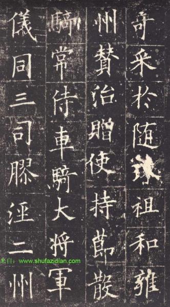 殷後華宗,名卿胄系。人物代德,衣冠重世。逢時翼主,膺期佐帝。運策經綸,執鈞匡濟。門承積慶,世挺偉人。夜光愧寶,朝采慚珍。雲中比陸,日下方荀。抑揚元輔,參贊機鈞。玉葉東封,貳圖北啟。伏奏青蒲,曳裾朱邸。名馳碣石,聲高建禮。珥筆憲台,握蘭文陛。分星裂士,建侯開國。輔藉正人,相資懿德。中台輟務,晉陽就職。望重府朝,譽聞宸極。亂階蔓草,災生剪桐。成師構難,太叔興戎。建德效節,夷吾盡忠。命屯道著,身歿名隆。牛亭始卜,馬獦初封。翠碑刻鳳,丹旆圖龍。煙橫古樹,雲鎖喬松。敬銘盛德,永播笙鏞。