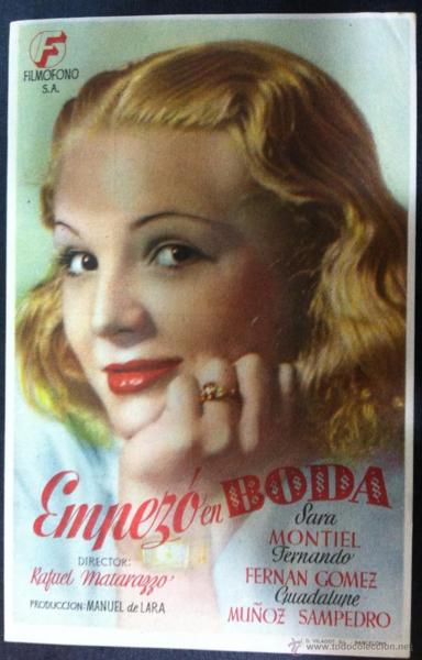 1944年底主演第二部電影──喜劇片[Empezó en boda] 藝名改為Sara Montiel, 並首次擔任女主角