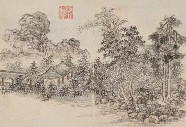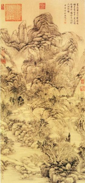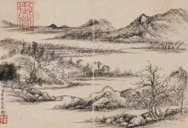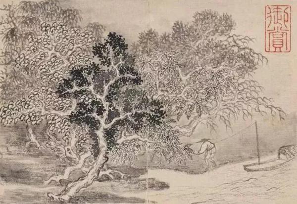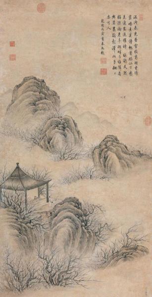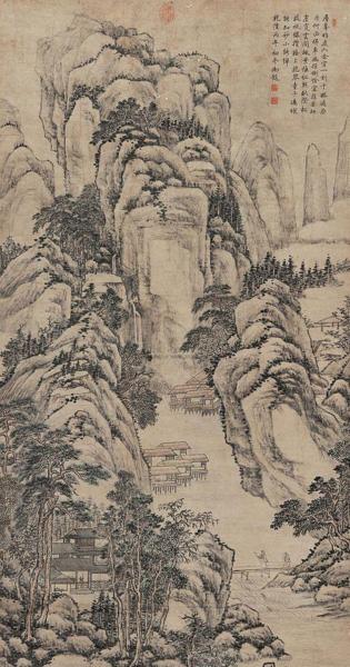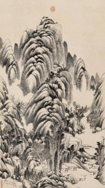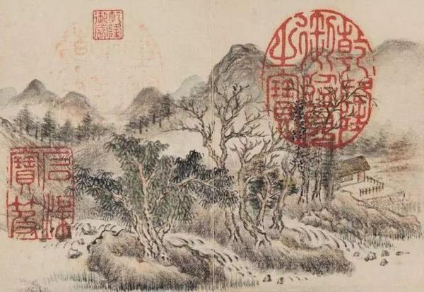 他的山水畫作品水墨疏淡,設色淡雅,用筆輕柔,皴法松秀,文人情趣極濃。