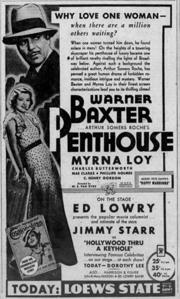 1933年夏天, MGM安排麥娜演出[Penthouse/閣樓]。