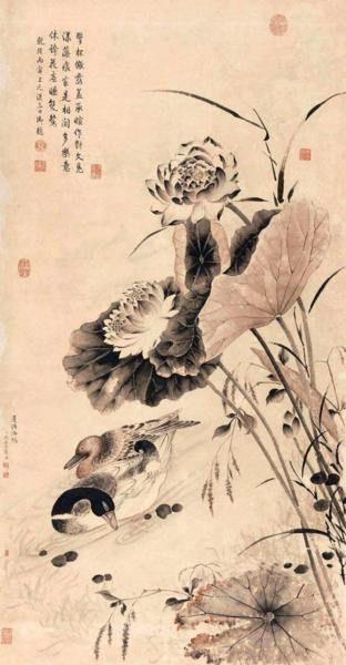 張若靄多數作品只供應內廷,屬於御用畫師,他負責編錄《石渠寶笈》, 還兼職宮廷畫家,常與西洋畫家郎世寧交往切磋。