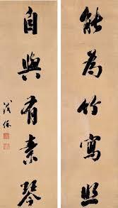書法早年曾學“館閣體”,後學顏真卿,取法其厚重,糾正“館閣體”帶來的板滯之病。