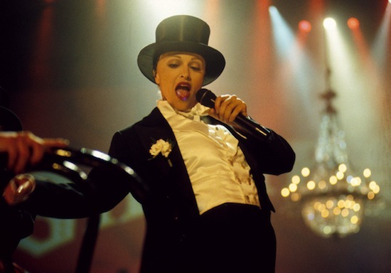 兩次表演中,她打扮成穿著燕尾服和禮帽的維多利亞時期紳士。
