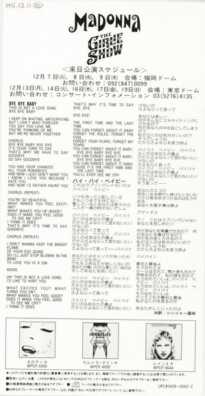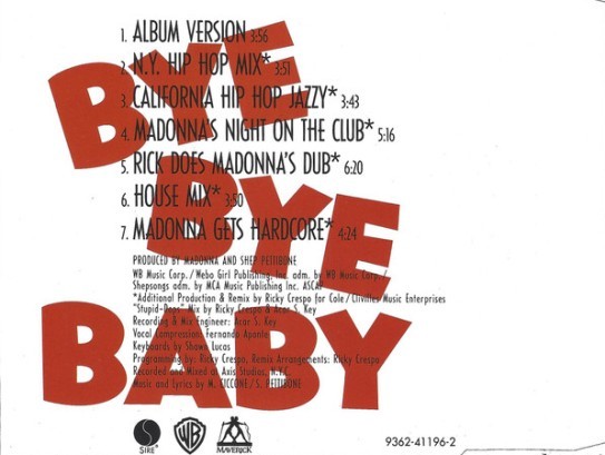 [Bye Bye Baby/再見寶貝]以鍵盤樂器為特色,在中板節拍中,瑪丹娜向她即將拋棄的情人提問