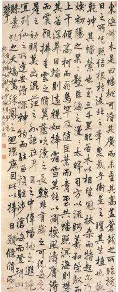 其書能大而不能小,然有奇勢,縱橫自放,而分間布白,無分寸失。