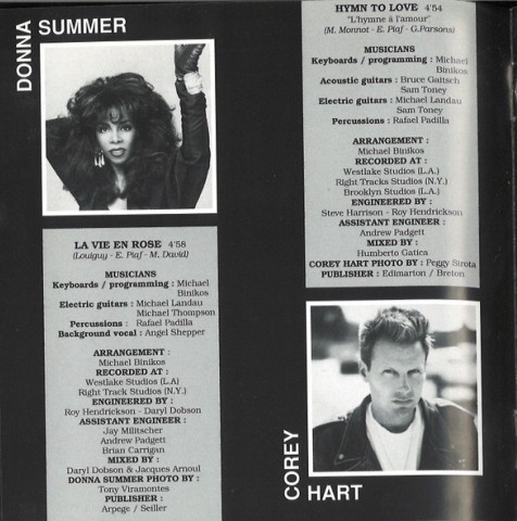 1993年,美國Amherst Records公司推出向法國一代歌姬伊迪絲琵雅芙致敬的紀念專輯 [Tribute to Edith Piaf](UK:AB Disques*Fr: BMG France)