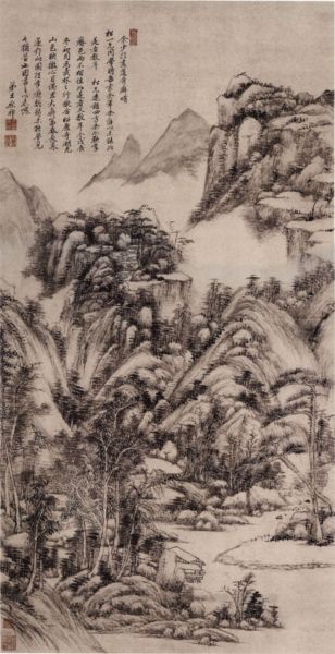 方士庶曾受其法。唐岱兼法宋元,筆墨工穩,略變王原祁面貌,成為婁東派中的院體畫家。