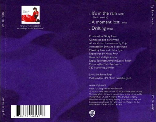 2005年11月25日, 34歲半的愛爾蘭新世紀音樂天后恩雅(Enya)發行個人第六張大碟[Amarantine/永恆](Reprise/Warner Bros.出版)