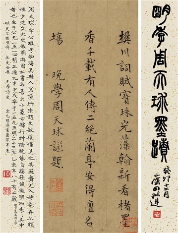 文學造詣方面,尤擅大小篆、古隸、行楷, 一時豐碑大碣,皆出其手,亦擅畫蘭草。