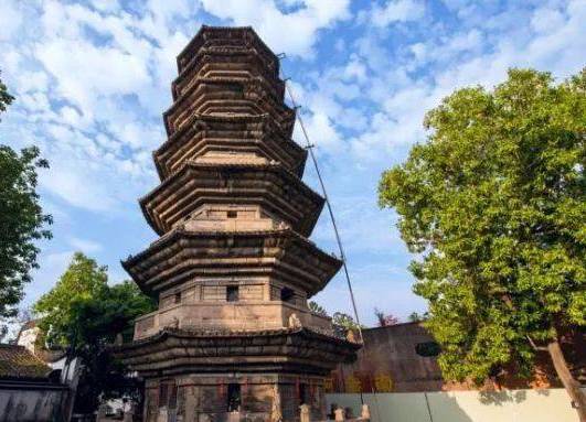 崇妙保聖堅牢塔為八角形,七層檐,用花崗石砌造,略呈黑色,通高34.74米。
