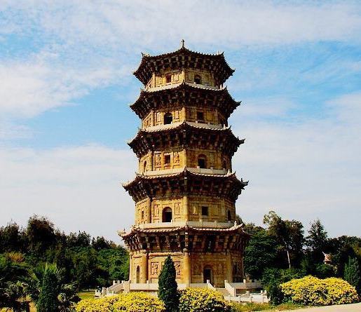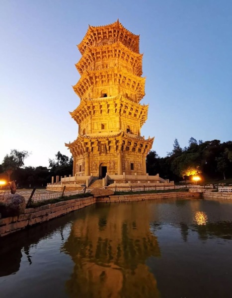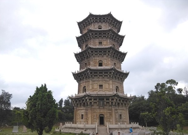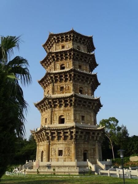 為八角五級仿木樓閣式石塔,高36.06米。底圍47米,花崗石仿木結構樓閣式建築,
