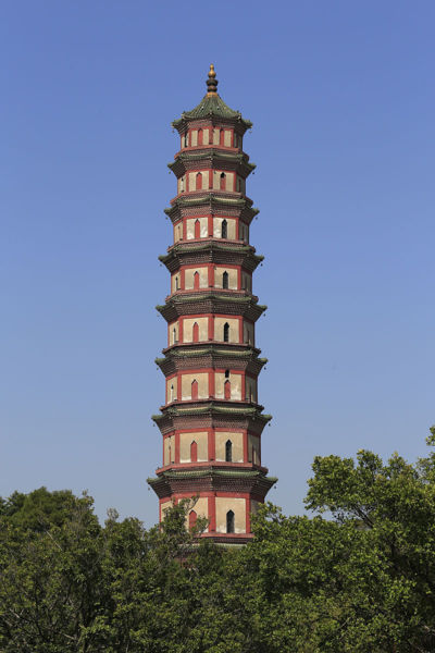蓮花塔屬樓閣式磚塔,平面八角形,外觀九層,內連暗層共十一層,高48米,占地約65平方米,