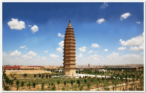 該塔始建於西夏年間,原高九層,後於明代加蓋至十三層,嘉靖年間該塔曾被地震嚴重損毀,後於萬曆年間重修。