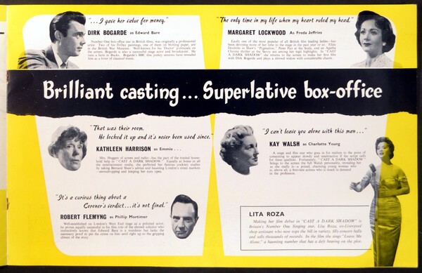 1955年,瑪格麗特演出事業最後一次擔任主角的電影[Cast a Dark Shadow/投下陰影]